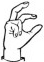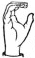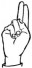 На ћирилици написано КОСТА БИЗУМИЋ састоји се из 12 слова [?]. Исписано ћириличном једноручном азбуком за глувонеме: